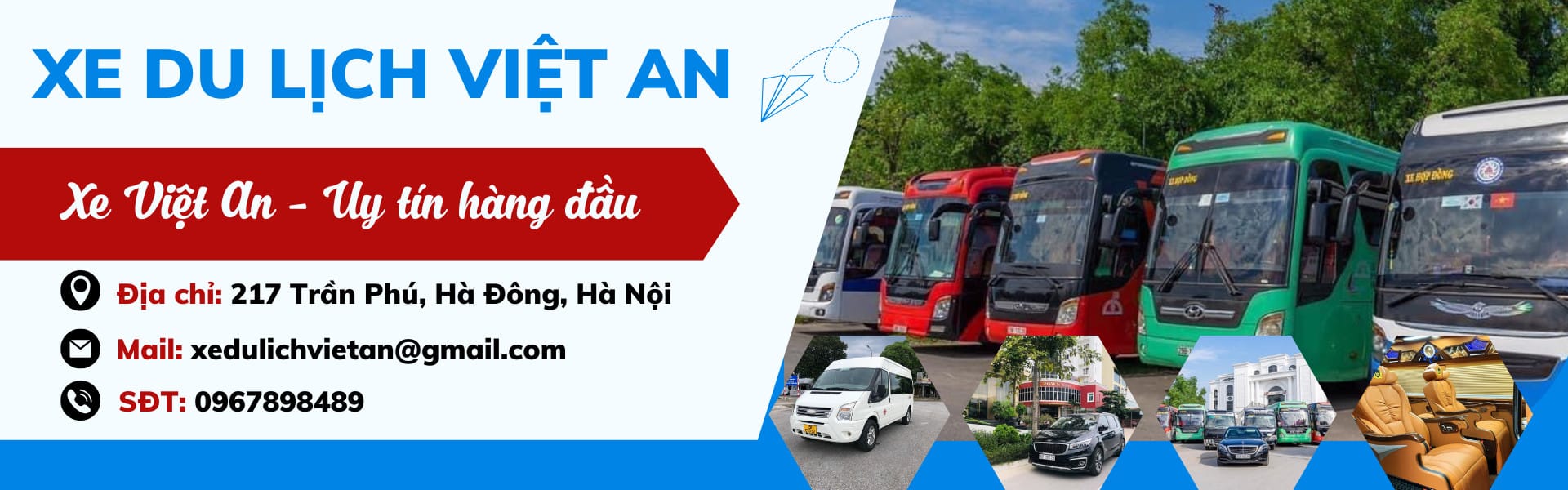 CÔNG TY TNHH VẬN TẢI VÀ DU LỊCH VIỆT AN là 1 công ty hàng đầu trong lĩnh vực thuê xe du lịch tại Hà Nội .Với nhiều năm kinh nghiệm thuê xe vào mùa du lịch , chúng tôi muốn mang đến cho quý khách hàng một sản phẩm tốt nhất với chi phí thuê xe tiết kiệm nhất .
